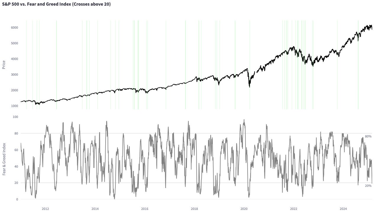 Other sentiment readings, such as the Fear & Greed Index, are close to triggering tactical buy signals. The most recent print was at 19. Historically, when the Fear & Greed Index crosses above 20, it tends to be a good short-term buying opportunity.