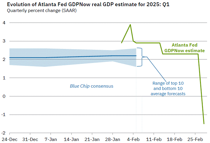 The Atlanta Fed GDP Nowcast is forecasting -1.5% GDP growth. The short-end is pricing 4x cuts until December 2026. Retail investor sentiment is at a 1-year bearish high. Making sense of it all.