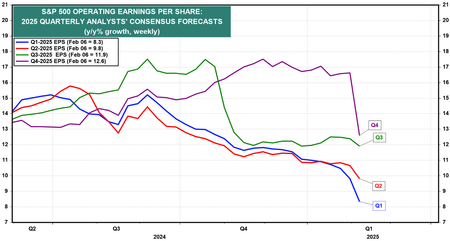 For equities to sell off meaningfully, earnings would need to disappoint. However, Q4 earnings have surprised to the upside—consensus expected +8.2%, but earnings rose by +13.3%. Expectations are certainly higher now, yet companies continue to exceed them. Interestingly, analysts have lowered earnings expectations for Q1, Q2, and Q3 of 2025. While macro analysts believe expectations are elevated, could analysts actually be too pessimistic? That would set the stage for the ultimate turnaround.