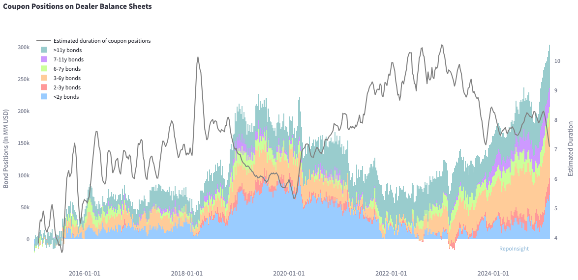 The SLR is a capital requirement that mandates banks to hold a minimum percentage of Tier 1 capital against their total leverage exposure, including assets like USTs and reserves at the Fed. Lowering the SLR would allow banks to hold more USTs on their balance sheets. During COVID, USTs were temporarily exempt from the SLR to improve Treasury market liquidity. Currently, primary dealers are already holding significant amounts of USTs on their books.