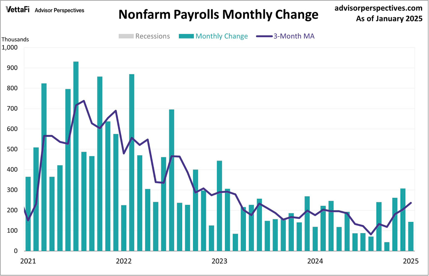 I have been invested in gold with 5-10% of my net worth in the past four years. At the moment, my allocation is lower. The environment remains positive for gold, and I like having an uncorrelated asset in my portfolio. However, a reduction in government spending ("DOGE") and the potential for a peace deal in Ukraine - which would reduce geopolitical risks - could dampen demand for gold. Friday's price action, with gold falling despite bonds rallying and the U.S. dollar selling off, was a concerning sign.