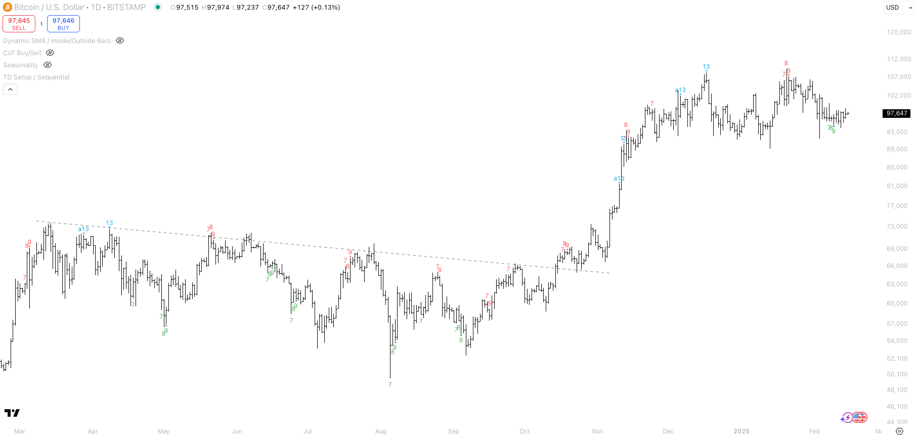 The bull case for the U.S. dollar was also driven by tariffs, but Trump has repeatedly delayed them—most recently, reciprocal tariffs were postponed until April 1st. To summarize: 1) The market remains long U.S. dollars, 2) Economic data is no longer surprising to the upside, 3) Tariffs have been delayed, 4) The Fed is unlikely to hike, with rate cuts largely priced out, and 5) U.S. equities have underperformed international markets year-to-date.