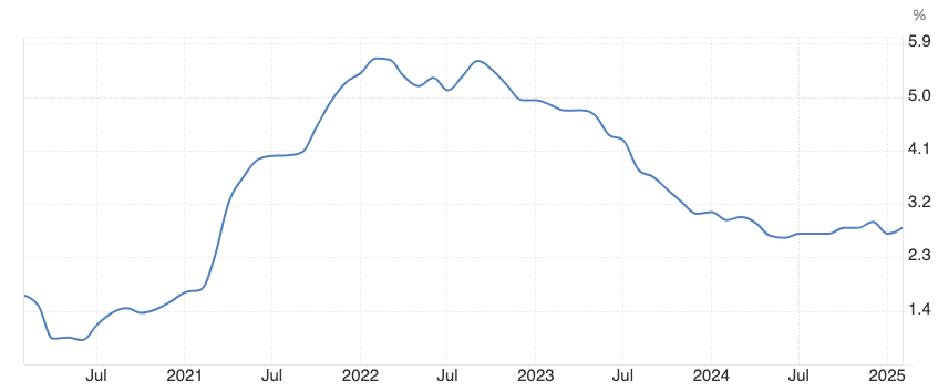 Core PCE, meanwhile, sits at 2.7% year-over-year. The Federal Reserve projects it will climb to 2.8% by the end of 2025—and even then, they anticipate two cuts next year.