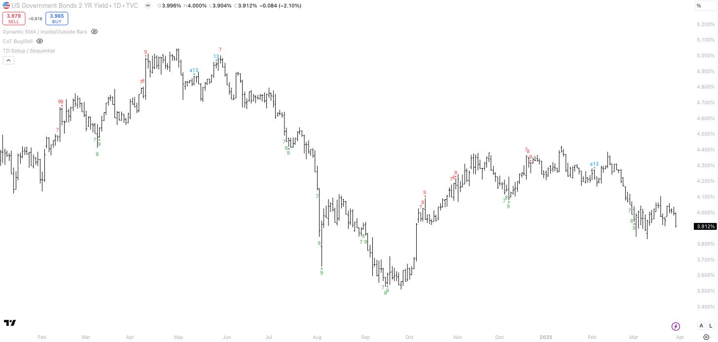 Sentiment surveys are max. bearish, but positioning has "room to go". Growth scare à la 2023. Sell the short-end if it prices 3-4 cuts in 2025. More macro trade ideas for Q2-2025.