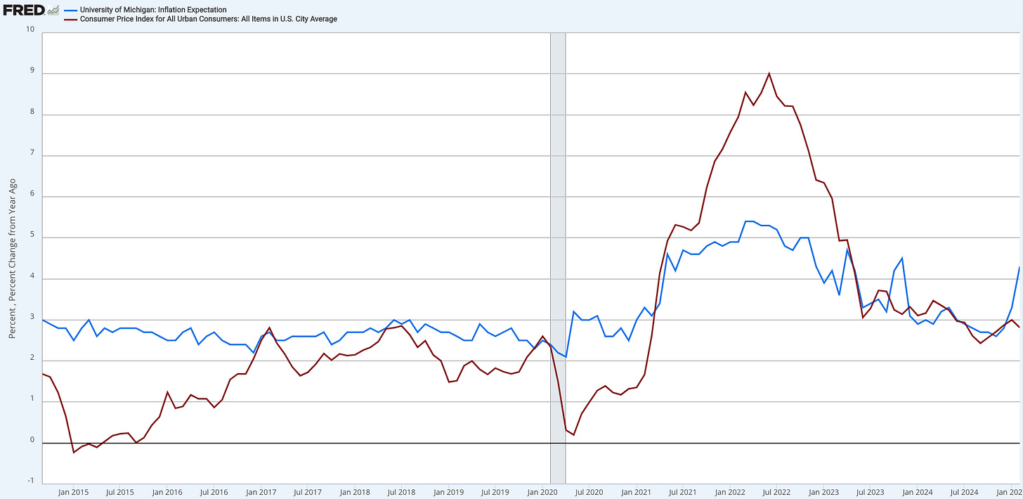 Yet, the University of Michigan’s inflation expectations survey points to a re-acceleration, likely fuelled by tariff concerns.