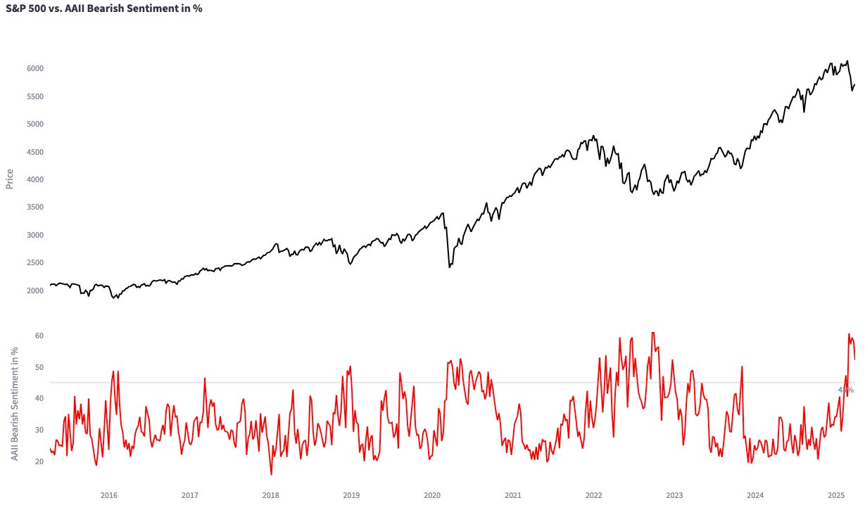 It seems nearly every macro investor out there is currently bearish—and for good reasons. Yet, markets are forward-looking discounting mechanisms. Historically, major bear markets don’t typically kick off with sentiment readings like these. Retail investors, in particular, remain overwhelmingly pessimistic: