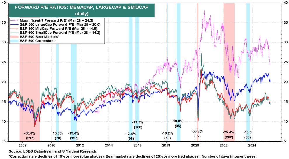 If equities drop another 5% amid tariff uncertainty, but the economy sidesteps a recession and earnings climb 5-10% in 2025, P/E ratios could start looking reasonable again. The critical question remains: will the U.S. economy slip into a recession?