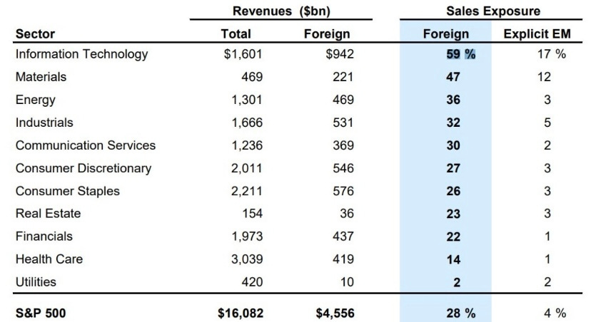 The universal tariff announcements make me cautious on my short US dollar thesis, my long US short-end thesis and my bullish view on US equities. With the trade war ramping up, we might get another deleveraging in financial markets. It is also noteworthy that a large chunk of the tech sector’s sales - 59% - are generated outside the US. If tariffs ramp up not only in Canada, Mexico and China, but also in Europe, will tech sales suffer?