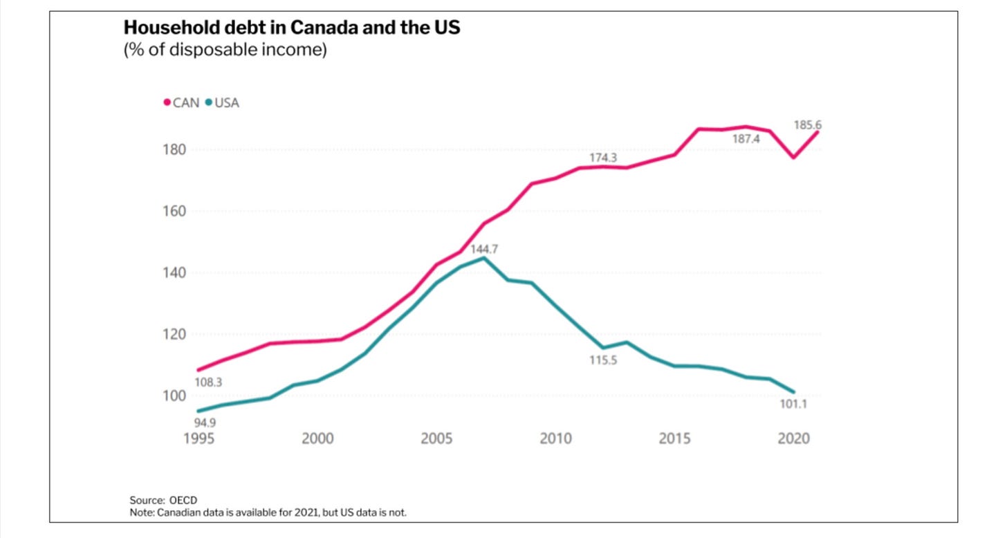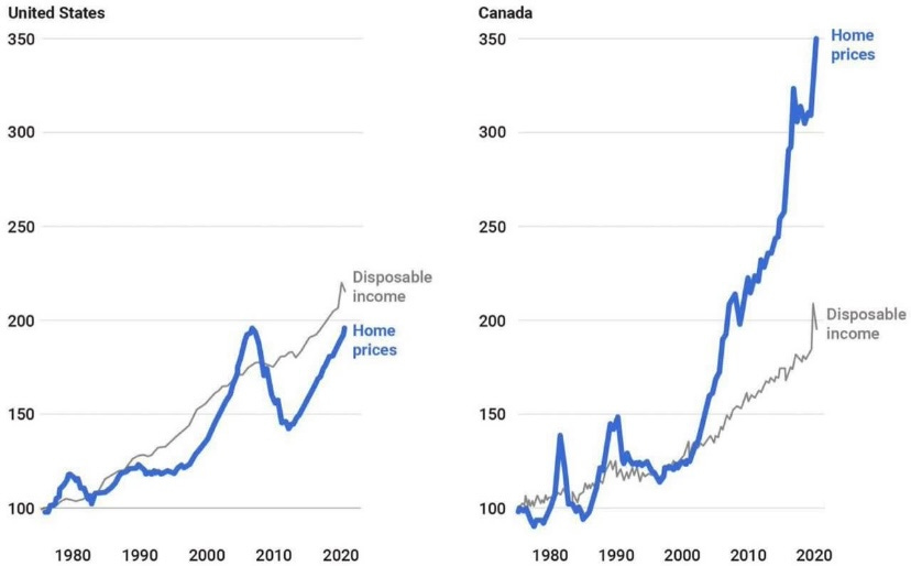 What is the worst case for the Canadian dollar? Let’s take a look at the housing market and debt dynamics. The Canadian housing markets has been booming in the past 20 years. But disposable incomes did not increase at the same speed.