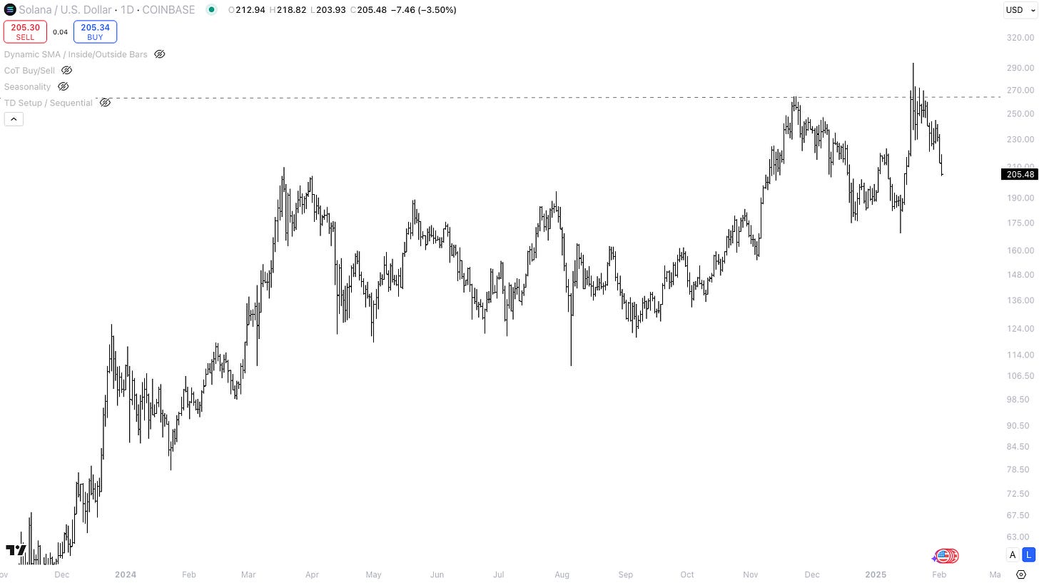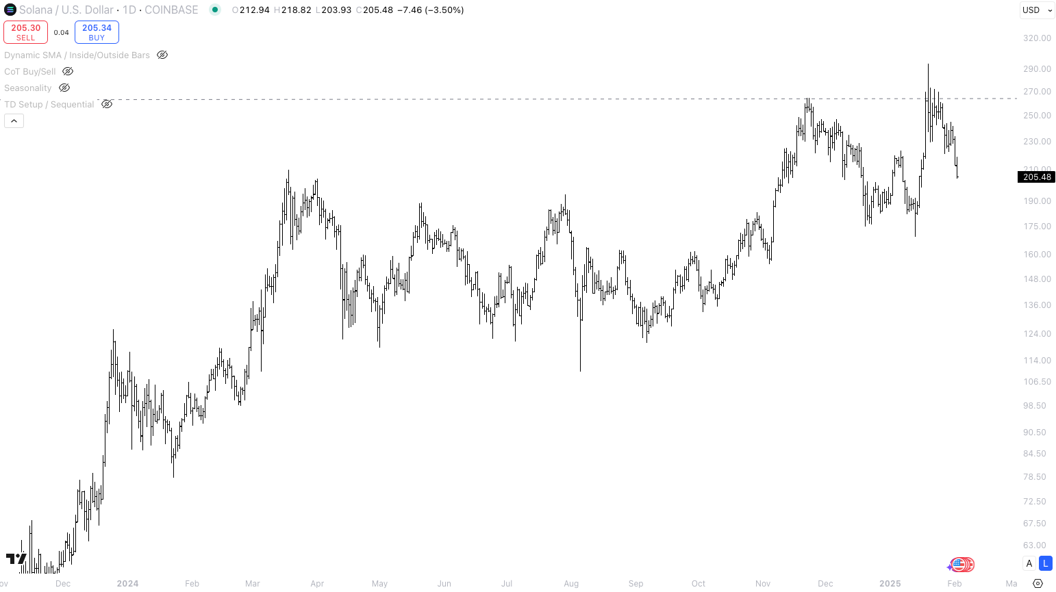 Crypto markets were open over the weekend. All major coins sold off (see Solana below).