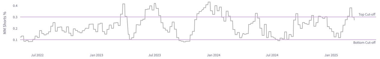 Another idea that I am currently monitoring is long oil. This idea is mainly based on positioning data. Money managers who are short as a percentage of total money manager positions are at extremes. If shorts are forced to unwind their positions, the resulting buying pressure could lead to higher oil prices.
