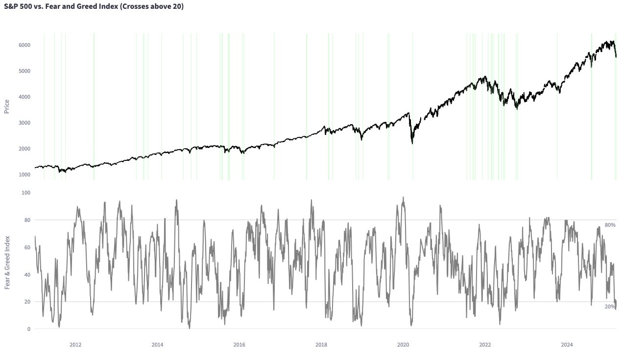 The CNN Fear & Greed index displays extreme fear and is now moving back up above 20. If the bull market continues, this correction could be one of the best buying opportunities in 2025. If this correction develops into a full-blown bear market, you have to be quick if you are trading a bounce.