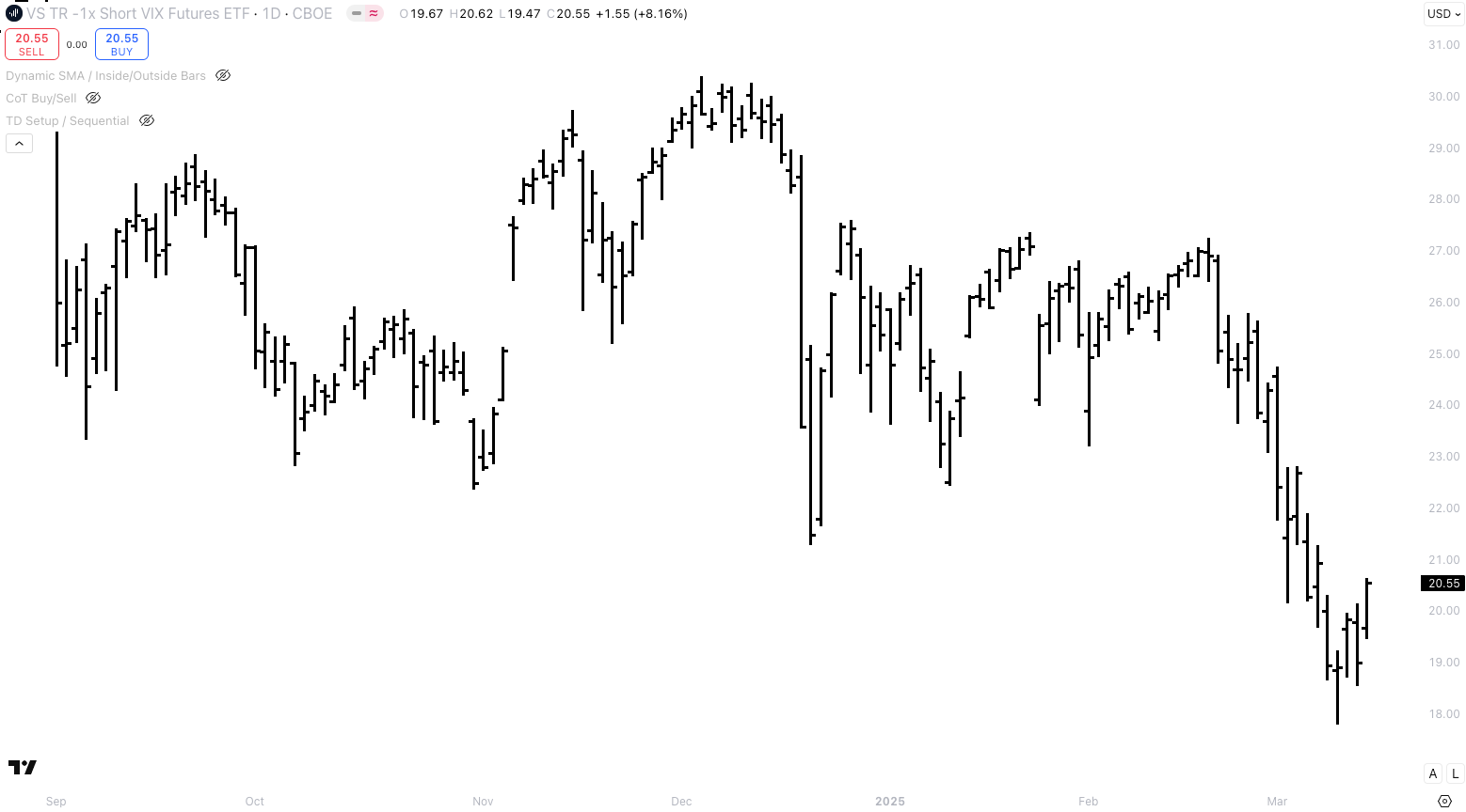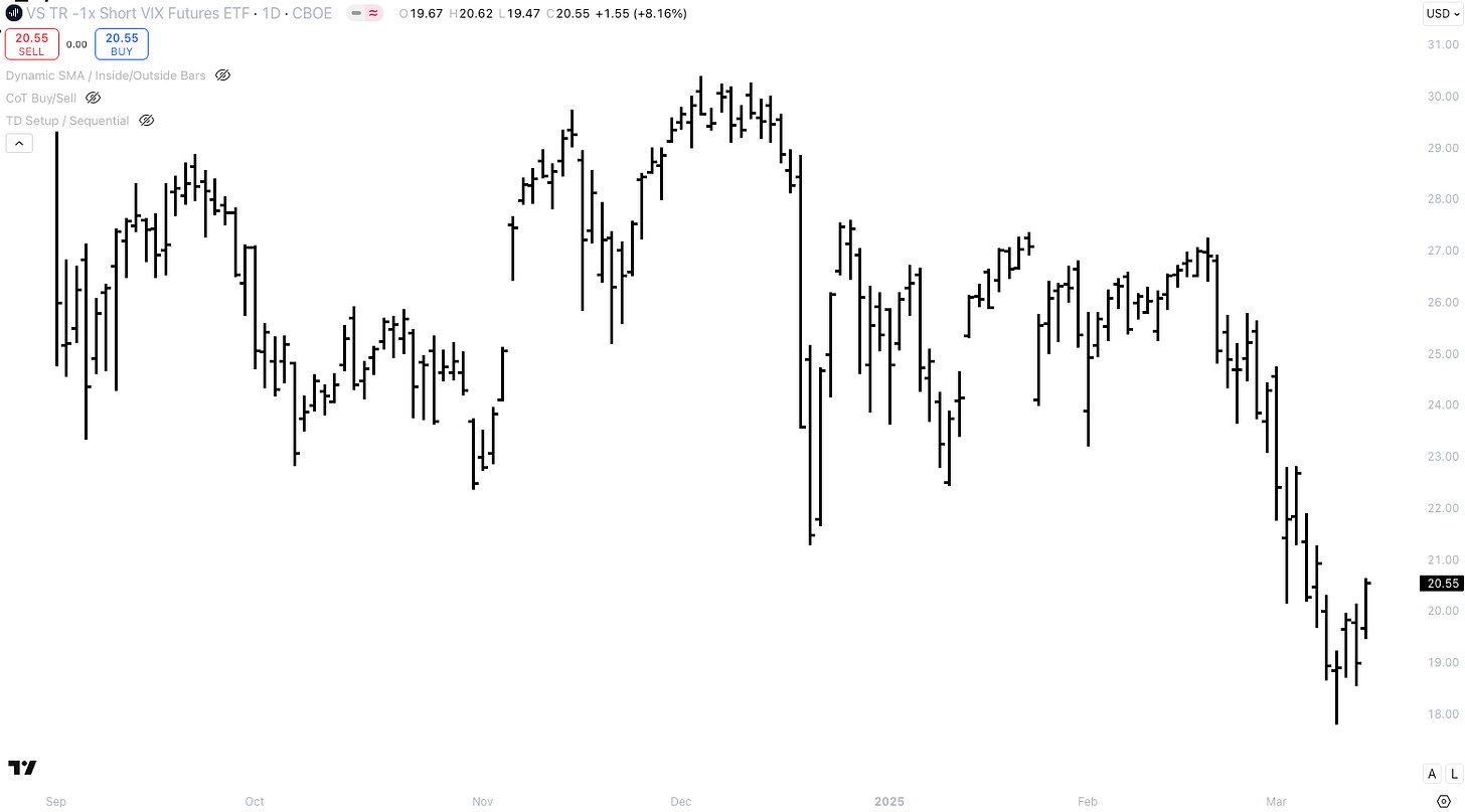 Another way to trade a bounce is to buy SVIX, which is a short VIX futures ETF. If equities rally, the VIX will likely decline. Interestingly, SVIX bottomed on Tuesday and is already off the lows. Are volatility markets pointing towards a low in equities too?