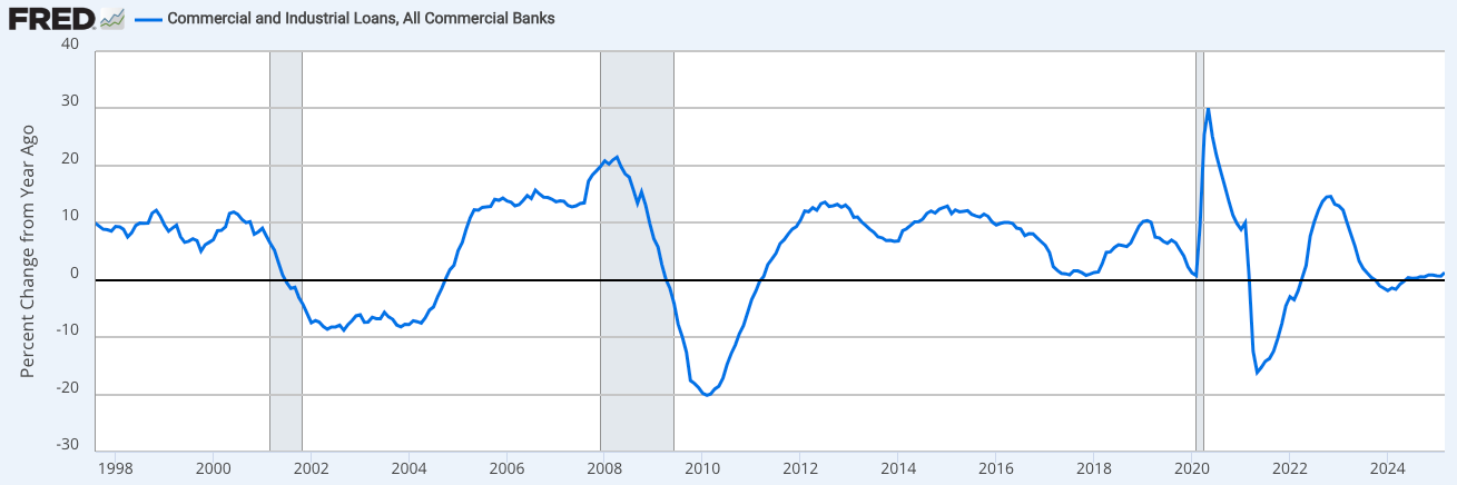 Credit has not been the driver of the economic expansion over the past two years. Growth in commercial and industrial loans is running close to 0%. Instead, real incomes are growing by nearly 2% per year — arguably a more stable and sustainable source of economic momentum than a credit boom.