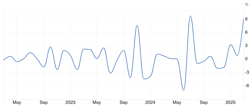 Durable goods orders rose 9.2% month-over-month, far exceeding the 2.0% consensus estimate. While the headline number is likely distorted by tariff front-running and seasonal effects like Easter, the broader picture suggests the US consumer remains in healthy condition.