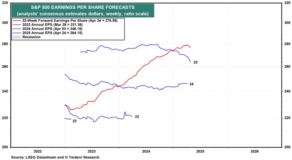 S&P 500 earnings estimates for 2025 have been revised lower by 5%. 3M, for example, announced that it expects tariffs to reduce 2025 EPS by 3–6%, roughly in line with the revisions seen so far. This raises an important question: are top-down analysts too bearish, and have bottom-up EPS estimates already priced in the tariff impact?