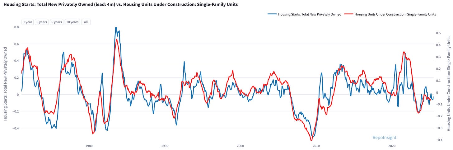 Housing starts surprised to the upside this week, likely supported by 30-year mortgage rates dipping back below 7%. As long as housing starts remain resilient, the number of housing units under construction should hold steady, preventing construction employment from becoming a drag on NFPs. However, with homebuilder backlogs now smaller, the housing sector poses a risk to the economy. That said, this week’s data does not indicate a meaningful slowdown in growth.